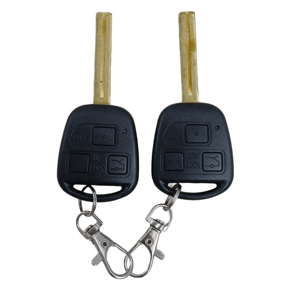 تظهر المفاتيح في الصورة بوضوح علامات "LOCK" و "UN LOCK" وهي أزرار التحكم عن بعد لفتح وإغلاق السيارة.